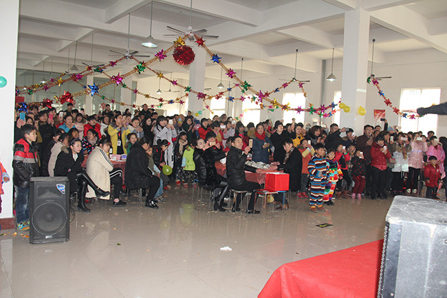 安徽豹子頭服飾公司員工觀看年會表演情景